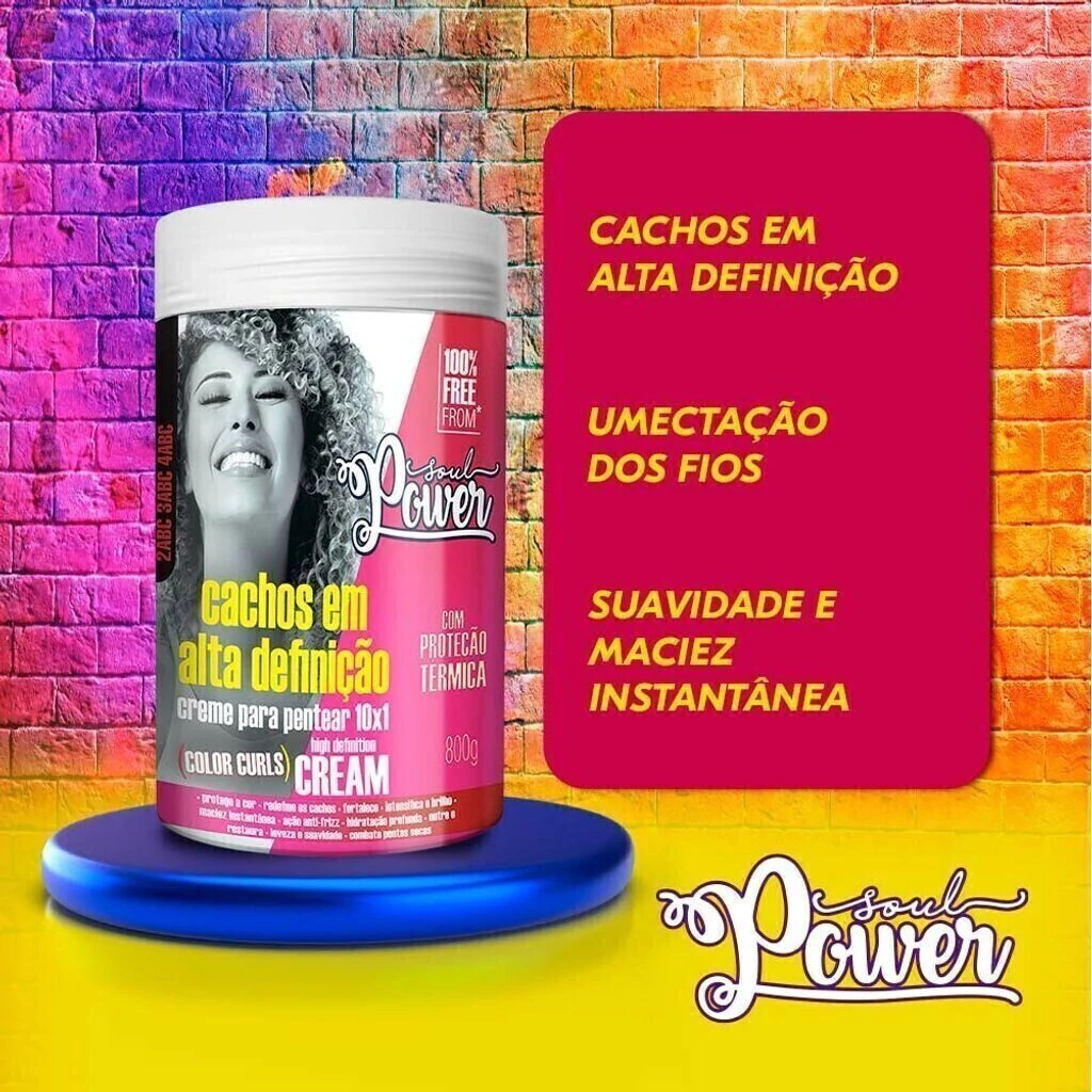 O Creme De Pentear Soul Power Color Curls High possui extrato fitoglicerinado de uva, queratina vegetal, aminoácidos, blend de linhaça e chia e manteiga de shorea. Esses ativos juntos conferem revitalização e nutrição dos cabelos, aumenta a umectação dos fios, restaura a massa capilar, conferindo melhor penteabilidade e brilho, reduz os danos na superfície da fibra capilar, forma um filme hidratante e protetor da cor, e previne o ressecamento. Além disso, redefine os cachos com leveza, suavidade e maciez instantânea.