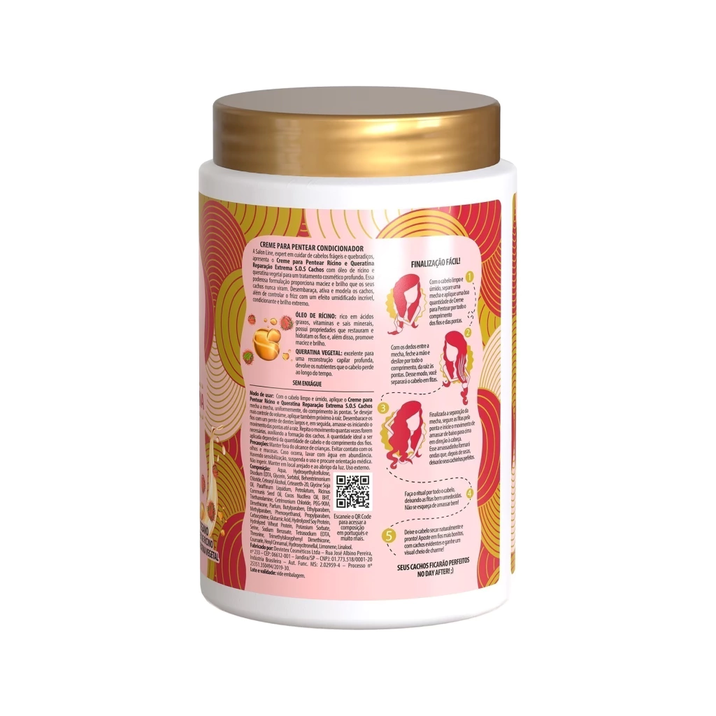 Experimente usar o Creme para Pentear Rícino e Queratina Reparação Extrema 5 em 1 S.O.S Cachos para finalizar os fios: