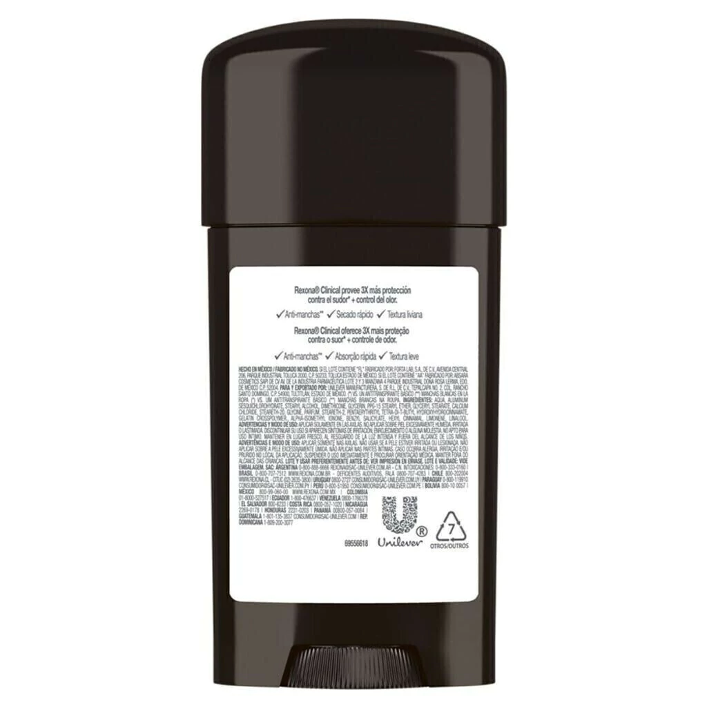 O Desodorante Antitranspirante Rexona Stick Clinical Men Clean 58g foi desenvolvido pensando em você, com 3x mais proteção contra transpiração excessiva e um ingrediente hidratante para o cuidado da pele. Rexona Clinical possui uma fórmula inovadora com a exclusiva tecnologia Invictus, contendo fragrância agradável encapsulada, que ajuda a prevenir a transpiração e o mau odor, sem silicone. o antitranspirante forma uma microblindagem contra o suor que dura por incríveis 96 horas de proteção, para que você se sinta sempre seco e fresco. Resultado: livre do suor e odor.
