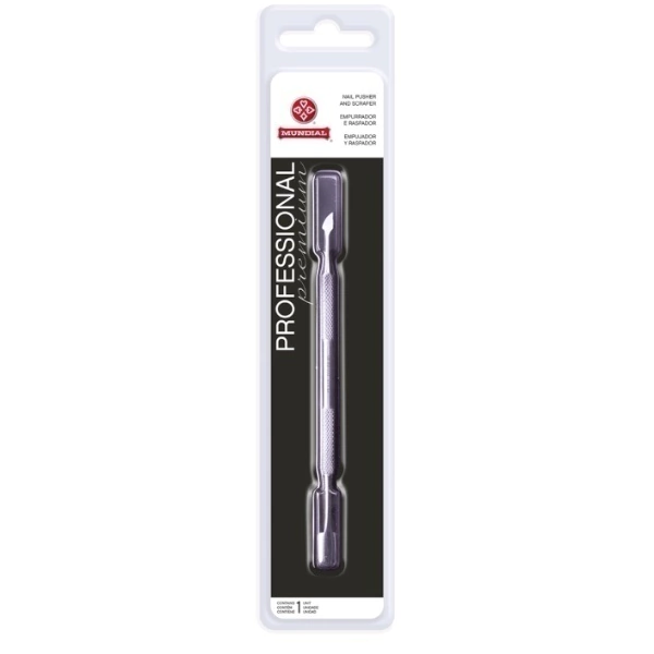 Espátula Ponta dupla Professional Mundial 371M é um instrumento para empurrar e raspar a cutícula resistente e aderida à unha, a espátula possui Cabo com textura aderente para ter mais precisão e segurança aos movimentos é de Aço inoxidável e Esterilizável em autoclave.