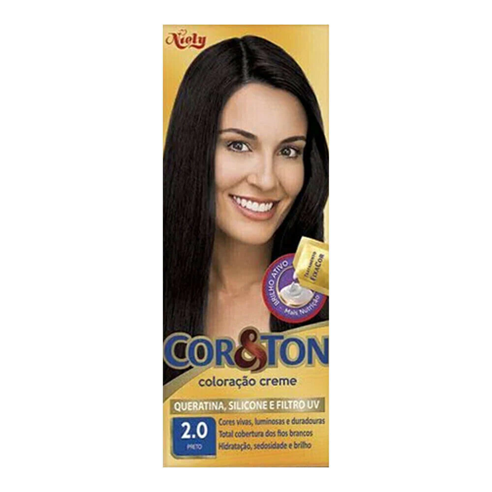 Tintura Niely Cor e Ton Preto 2.0 é uma coloração creme permanente com fórmula de altíssima qualidade. Ela garante uma perfeita cobertura dos fios brancos e ainda oferece 33 nuances de cores, para escolher a que mais combina com você. A Niely Cosméticos está sempre buscando o melhor para os seus cabelos. E é por isso que a nova bisnaga traz o tratamento fixa cor para cuidar dos seus cabelos como eles merecem. Com exclusiva fórmula hidratante, ela garante cor mais rica, brilhante e duradoura.
