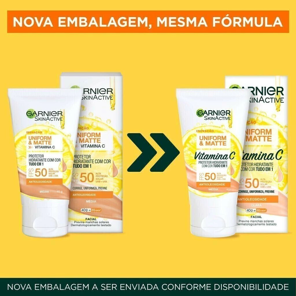 Novo hidratante Garnier Uniform&Matte com Cor com Vitamina C Antioleosidade - MÉDIA 40g Benefícios: