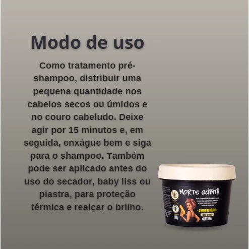 Lola Cosmetics Morte Súbita é a hidratação para cabelos danificados e detonados por químicas e descoloração. Com proteínas e emolientes, Lola Morte Súbita repara e fortalece os fios para um cabelo saudável.